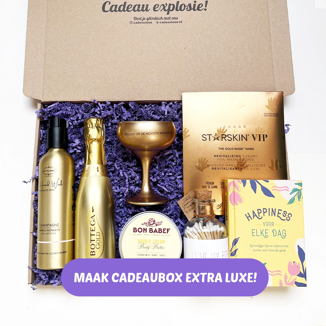 Een stijlvolle cadeaubox die perfect is om iemand te verrassen. Luxe, feestelijk en direct klaar om te geven.