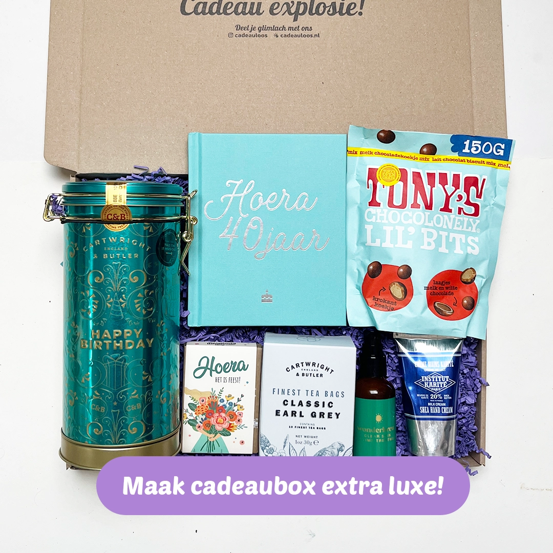 Geen midlifecrisis, maar een midlifefeestje! Deze cadeaubox zit bomvol vrolijkheid, verwennerij en een beetje magie, maar dat is precies wat je nodig hebt om 40 stralend te vieren