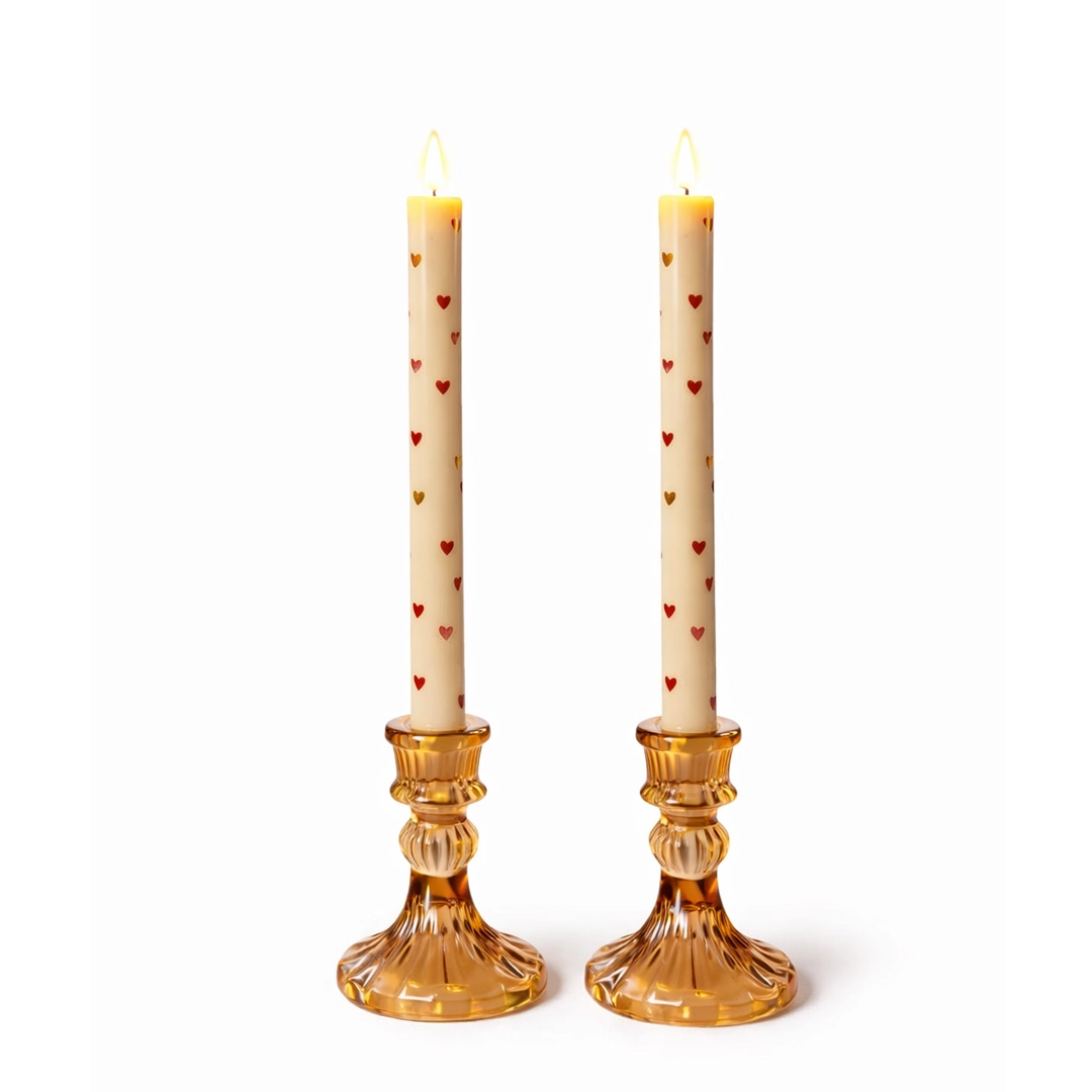 Stijlvolle LED-kaarsen met bronzen hartmotief. Creëer een romantische en elegante ambiance zonder open vlam. De twee ledkaarsen krijg je inclusief batterijen geleverd.