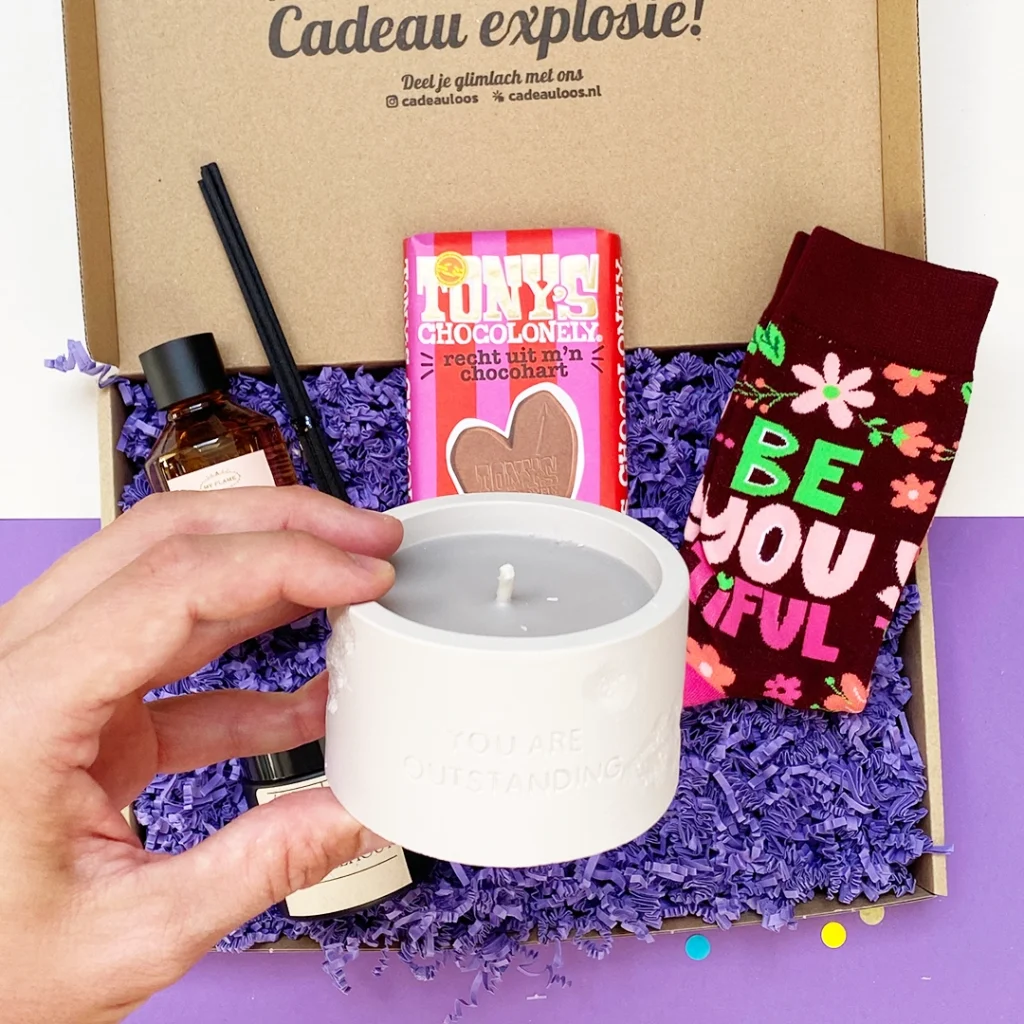 Onze cadeauboxen voor verjaardagen gaan verder dan een simpele verzameling producten. We houden rekening met een aantal dingen. Zo zit er altijd iets lekkers in, iets verzorgends en een verrassend item dat zorgt voor een glimlach. Op die manier wordt elke box een feest om te geven én te krijgen